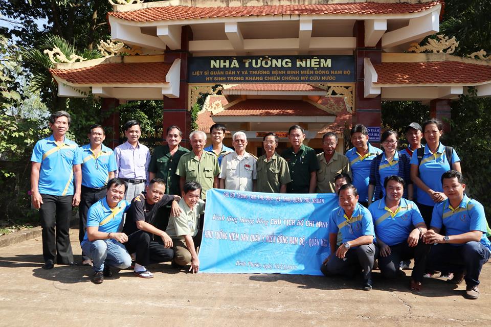 Thực hiện nghị quyết của Chi bộ về giáo dục lịch sử truyền thống cho thế hệ trẻ. Nhân kỷ niệm 73 năm ngày thành lâp Quân đội Nhân dân Việt Nam (22/12/1099 – 22/12/2017 ), Chi bộ Trung tâm TDTT tổ chức chuyến du khảo về nguồn cho cán bộ, Đảng viên, Đoàn viên Công đoàn, Đoàn viên Thanh niên, bộ đội xuất ngũ đang công tác tại Trung tâm đến viếng và tặng tượng đồng Chủ tịch Hồ Chí Minh tại nhà tưởng niệm Quân Dân y miền Đông Nam bộ B2.